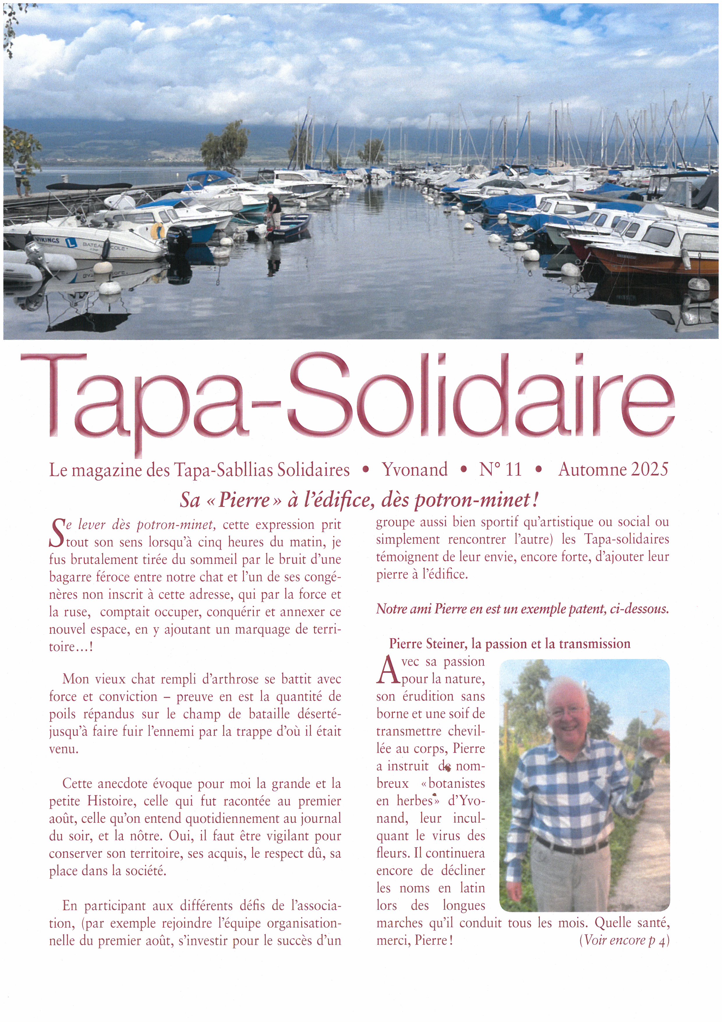 Village Solidaire des Tapas Sabllia Veuillez prendre connaissance du magazine des Tapa-Sabllias Solidaires d’Yvonand, éditions no. 11, Automne 2025 Fichier Tapa Solidaire_Automne 2025_no. 11.pdf Marque-pages Revendiquer cette Annonce Avis Photos (1) Annonces similaires Filtre Trier par : Utilité Plus récents en premierPlus anciens en premierTitreAléatoireNote de l’article Donner votre avis Note de l’article et plus et plus et plus et plus N'importe Mot-clé Contient tous les mots Contient au moins un des mots Trier par : Votes Plus récents en premierPlus anciens en premierTitreAléatoire Tapa Solidaire_Automne 2025_Couverture.jpg Il y a 2 semaines Afficher 1 résultat Filtre Trier par : Plus récents en premier Plus anciens en premierTitreAléatoireLes plus commentésLes mieux notésRevendiquéNon revendiqué Liste Grille Mis en Vedette/normal Montrer uniquement les mise en vedette Revendiqué / Non revendiqué Afficher les revendiqués seulement YVONAND - Le Village Solidaire d'Yvonand - Ses activités pour toutes et tous en un coup d'oeil ! Village Solidaire des Tapas Sabllia Informations Veuillez prendre connaissance de toutes les activités proposées par Le Village Solidaire d’... Afficher 1 résultat